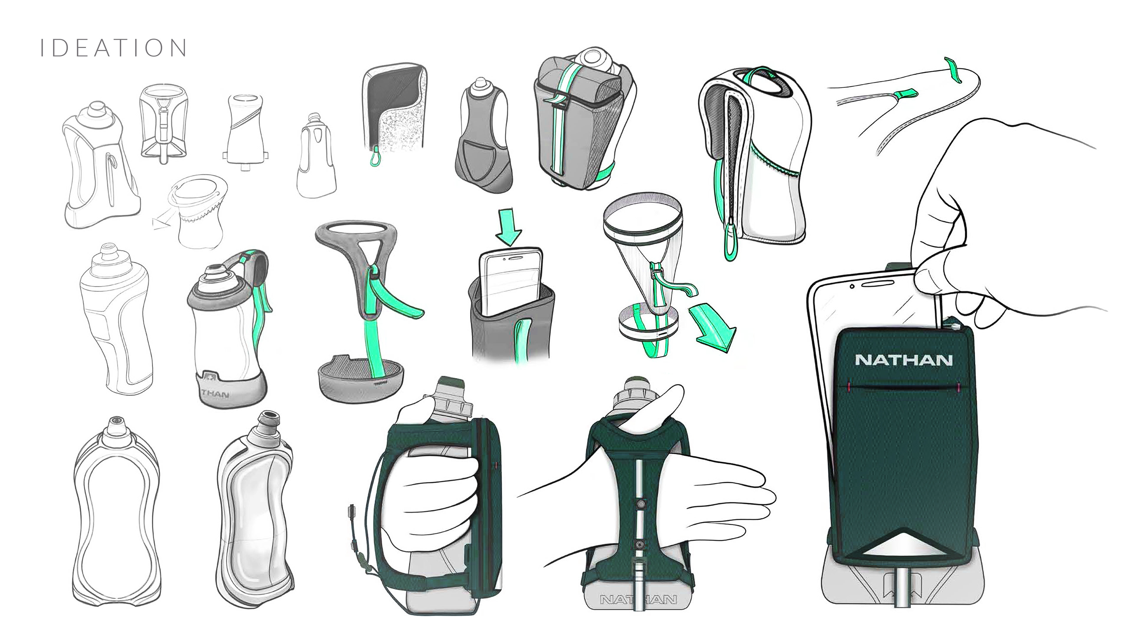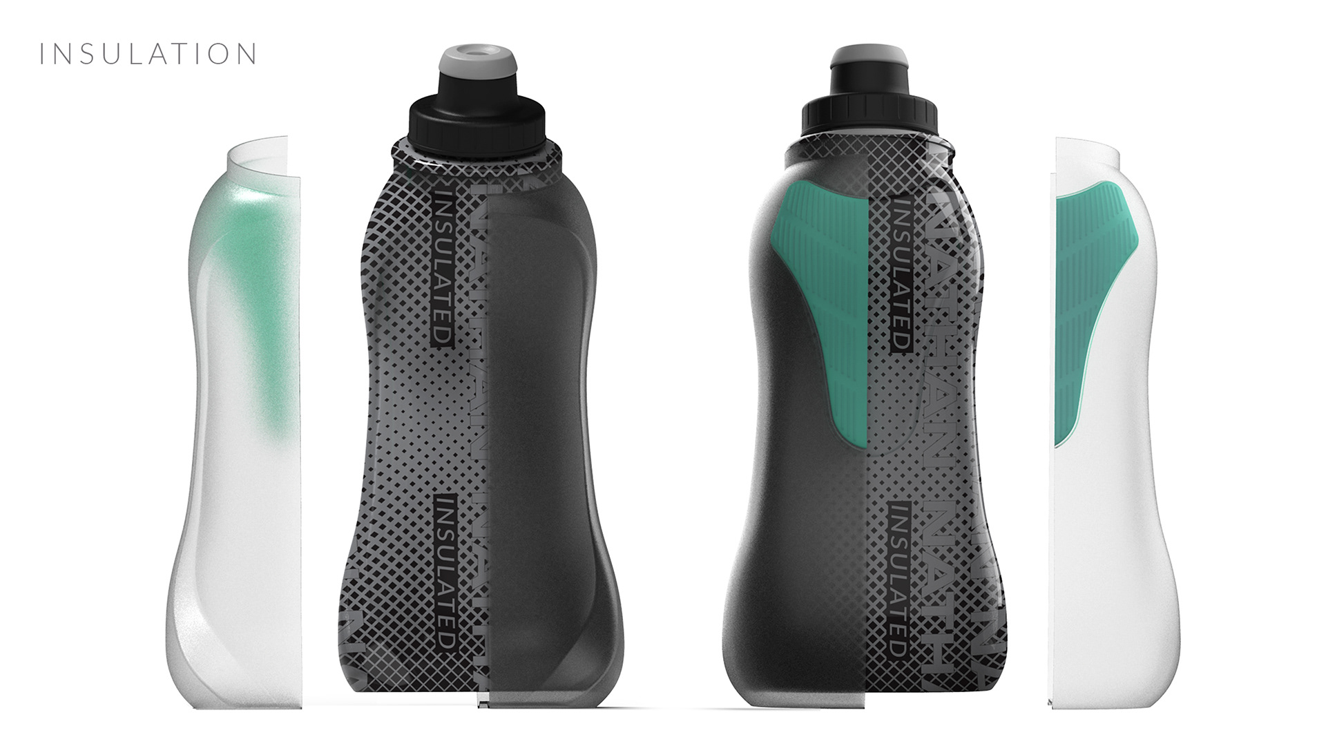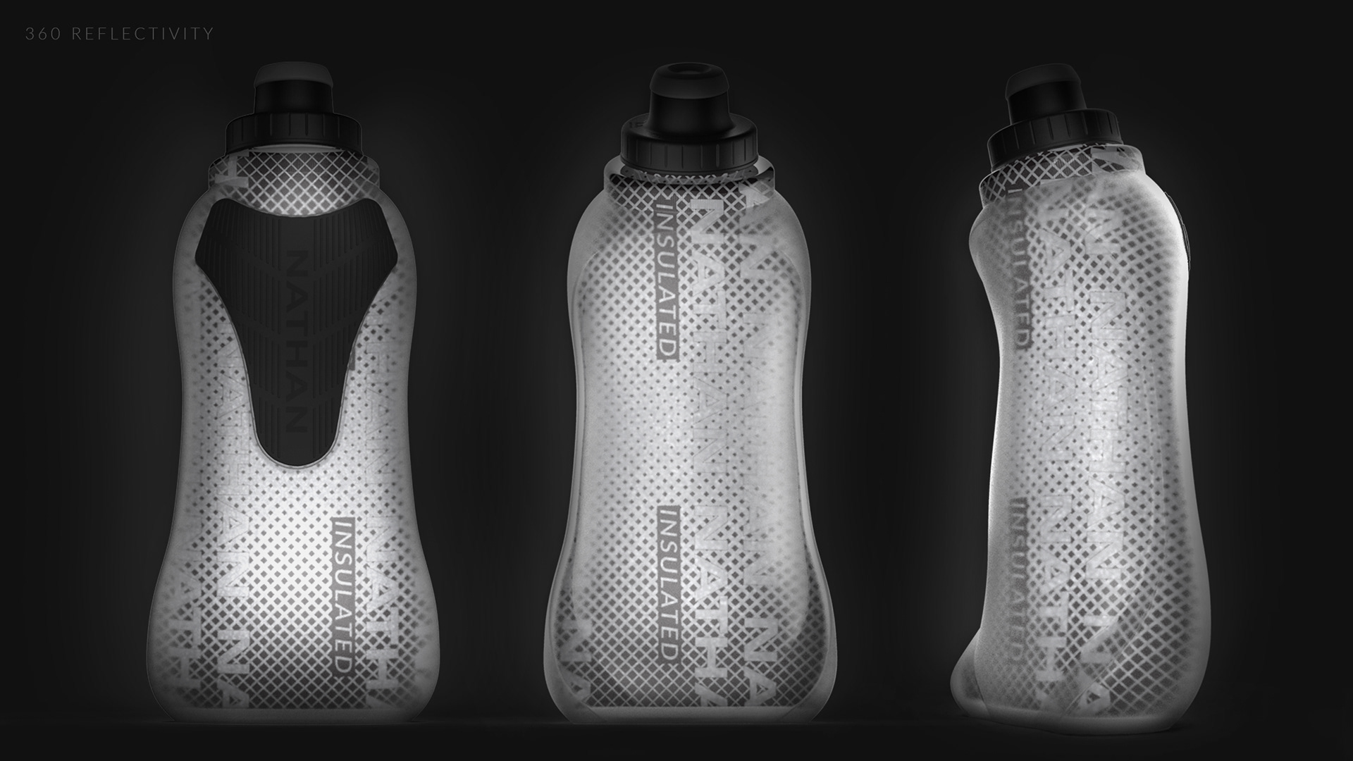 Re-design of Nathan Handheld flasks. This line has three sizes ranging 12oz - 22oz, it includes both normal and insulated bottles. (Project was completed for SS21)