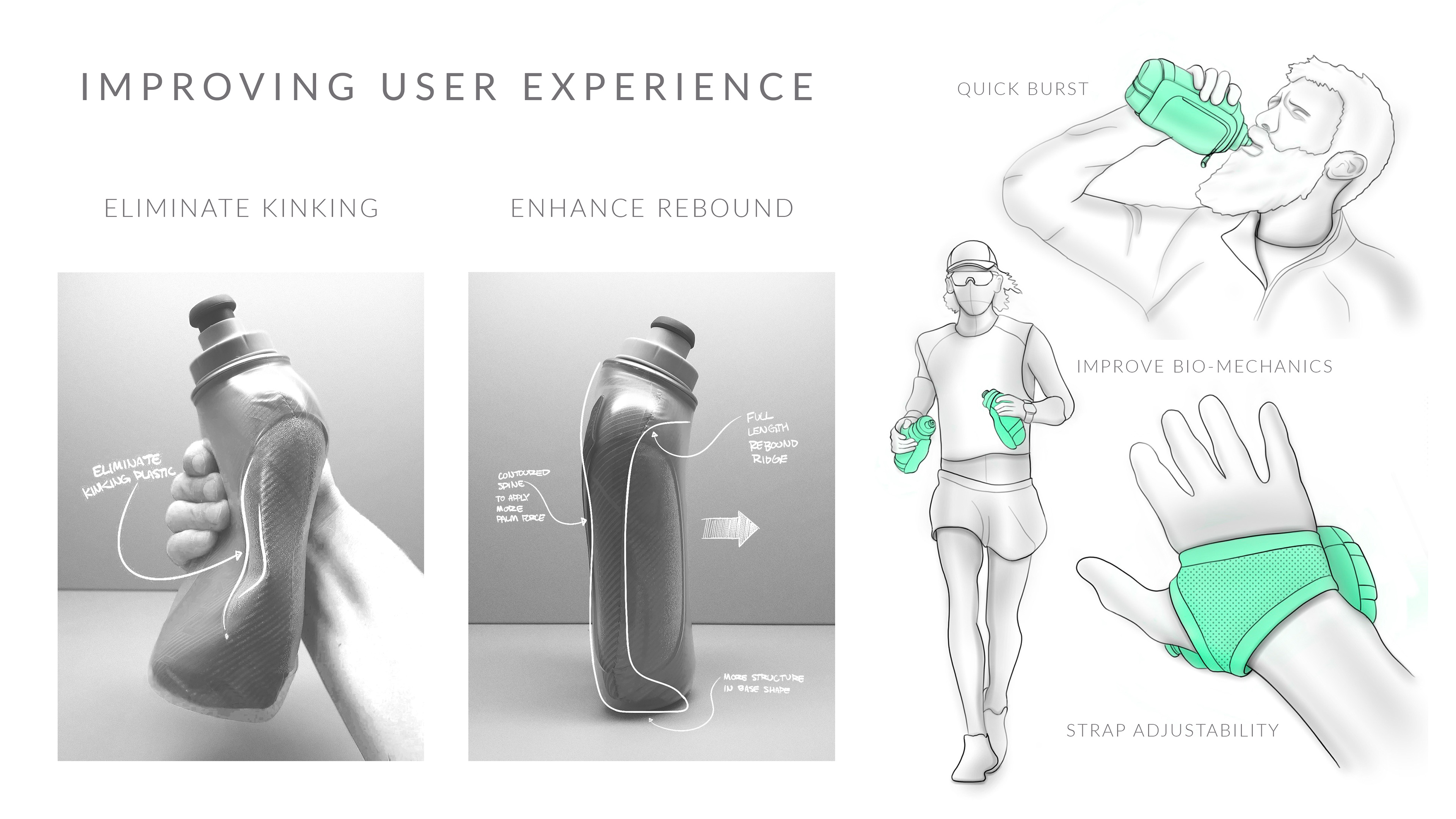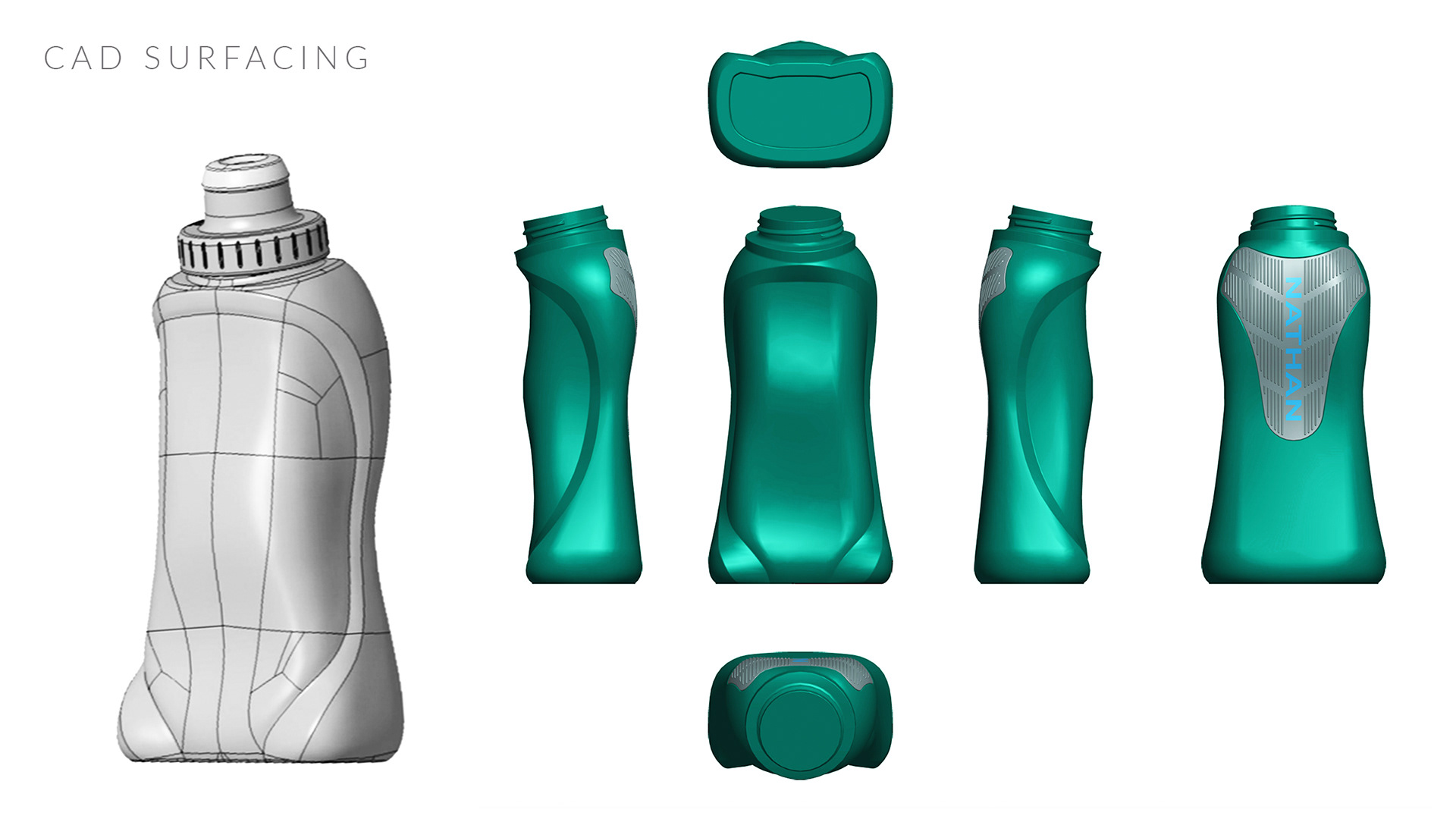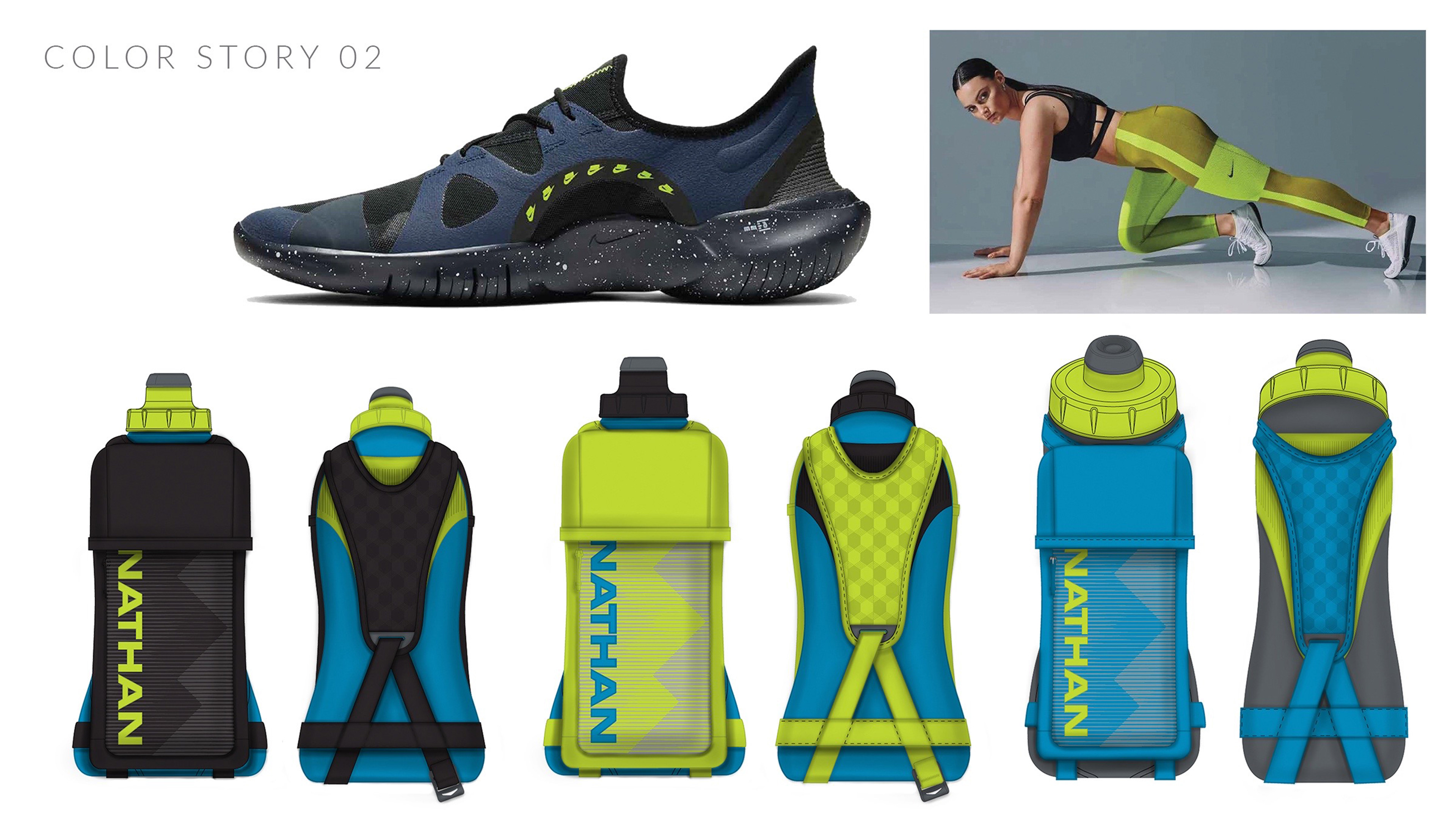 Re-design of Nathan Handheld flasks. This line has three sizes ranging 12oz - 22oz, it includes both normal and insulated bottles. (Project was completed for SS21)